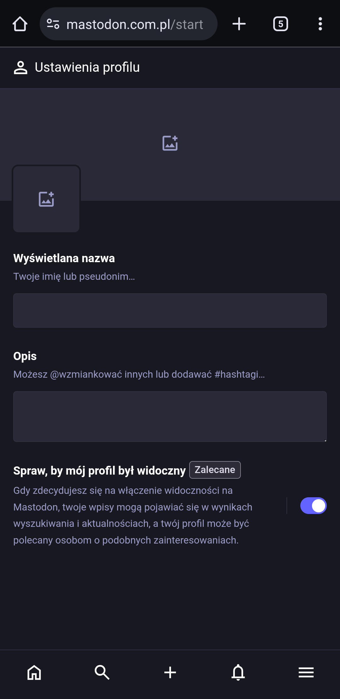 Po potwierdzeniu konta logujemy się i naszym oczom ukazuje się widok utworzonego profilu. Tutaj ustawiamy wyświetlaną nazwę użytkownika, zdjęcie profilowe, zdjęcie w tle i krótki opis. Wszystko to można zmienić w dowolnym momencie.