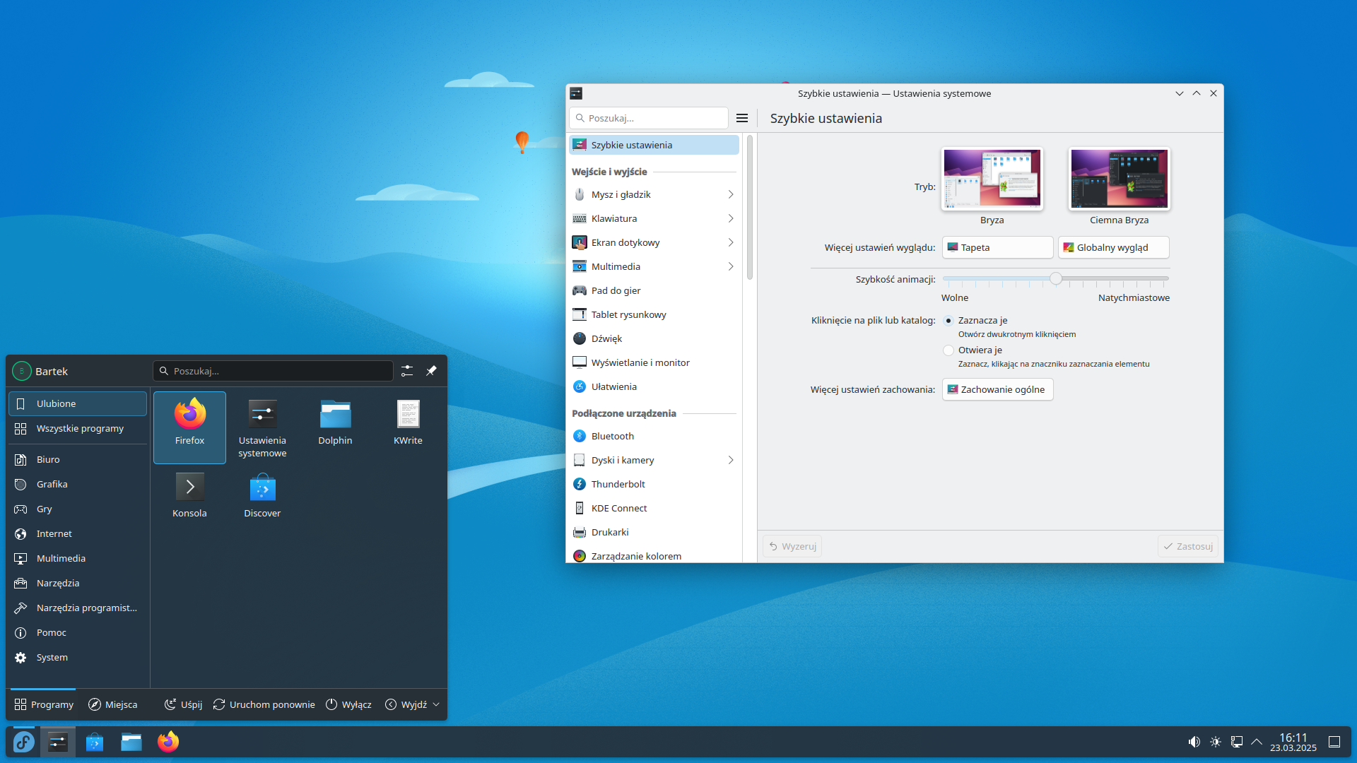 Fedora oferuje kilka rodzajów swoich dystrybucji, główne z nich to Workstation i Atomic. Obydwie dystrybucje oferowane są domyślnie ze środowiskiem Gnome 3 oraz dodatkowo z KDE. Wersja Workstation jest klasycznym odpowiednikiem wcześniej omawianych dystrybucji, za to Atomic jest czymś wyjątkowym. Jego koncepcja polega na izolacji i konteneryzacji pakietów (aplikacji) instalowanych w systemie, używa do tego rozwiązania zwanego FLATPAK – gotowych samodzielnych odizolowanych od systemu paczek z programem i jego zależnościami. Sam system ze względów bezpieczeństwa nie pozwala na zapisywanie na partycji systemowej żadnych danych, a aktualizacje polegają na pobraniu nowego obrazu całego systemu, który po ponownym uruchomieniu staje się zaktualizowanym systemem. Jako zwolennik KDE polecam Kinoite – czyli wersję Atomic ze środowiskiem KDE. Dla tych preferujących Gnome dostępna jest wersja SilverBlue.