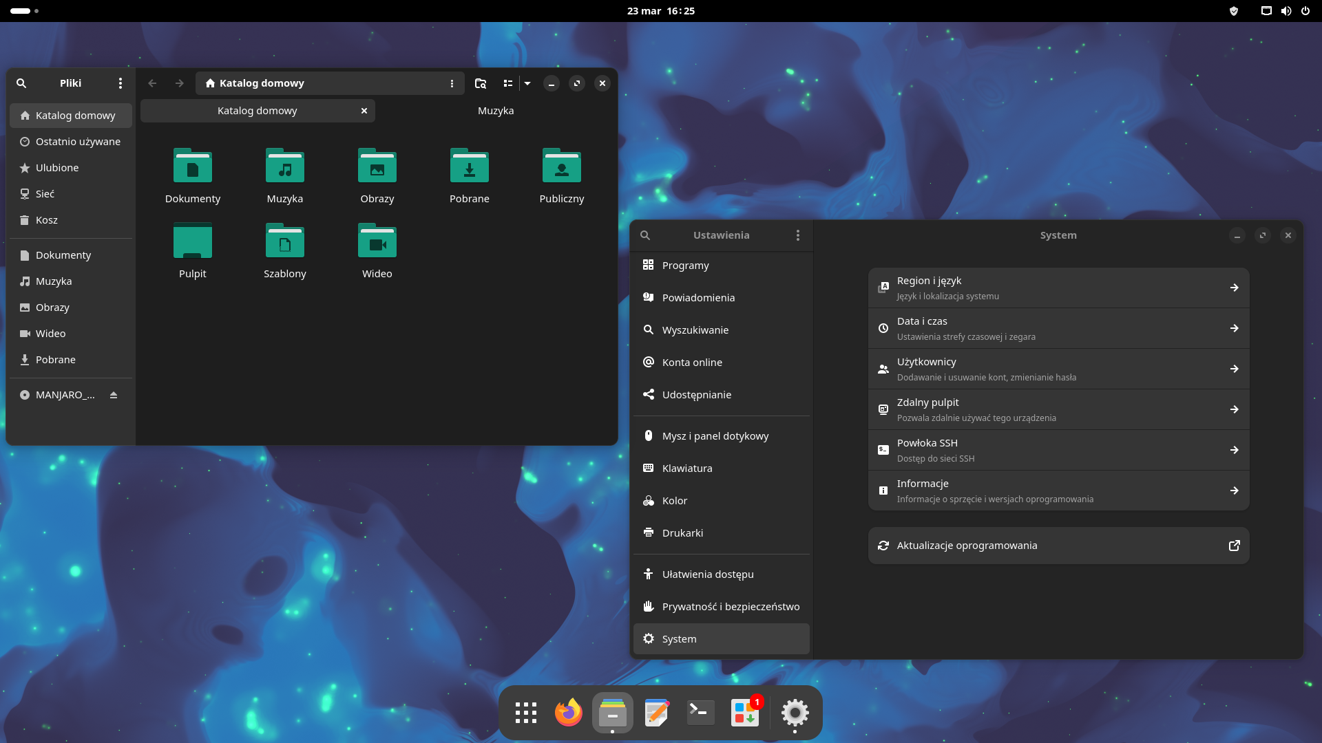 Gratulacje! Udało Ci się samodzielnie zainstalować system, który jest naprawdę Twój! Pozostaje nam tylko ewentualne zaktualizowanie pakietów do najnowszych wersji poprzez Pamac (klikamy czerwoną ikonę w trayu).