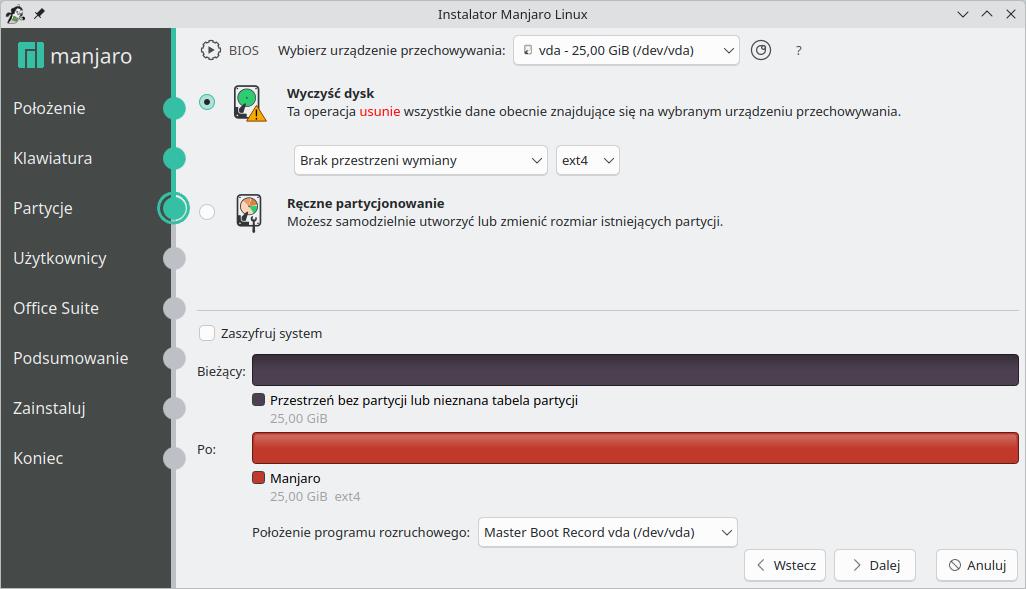 Jako przykład instalacji posłuży nam dystrybucja Manjaro. Do zainstalowania naszego Linuxa na dysku potrzebować będziemy oczywiście pamięci USB o pojemności co najmniej 8GB i najlepiej w wersji USB 3.0. Jako narzędzie do skopiowania obrazu naszej dystrybucji na pamięć USB użyjemy aplikacji Rufus, dostępnego na systemy Windows (alternatywnie można użyć programu Balena Etcher).