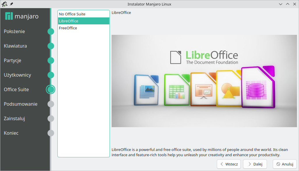 Następnym elementem systemu są aplikacje które używamy na co dzień takie jak pakiety biurowe, przeglądarki, klienty pocztowe itp. Dostępne są one zazwyczaj w repozytoriach danej dystrybucji, ale możne je też instalować ręcznie.