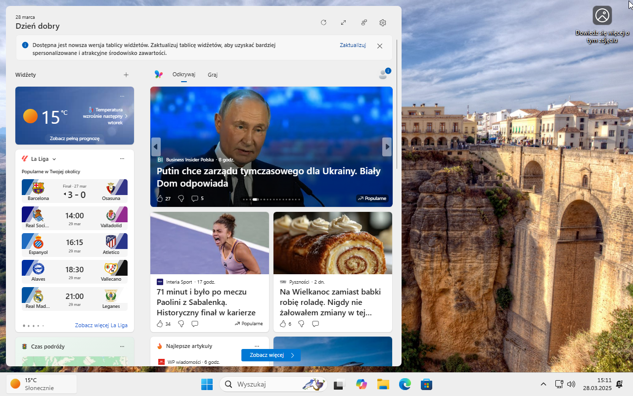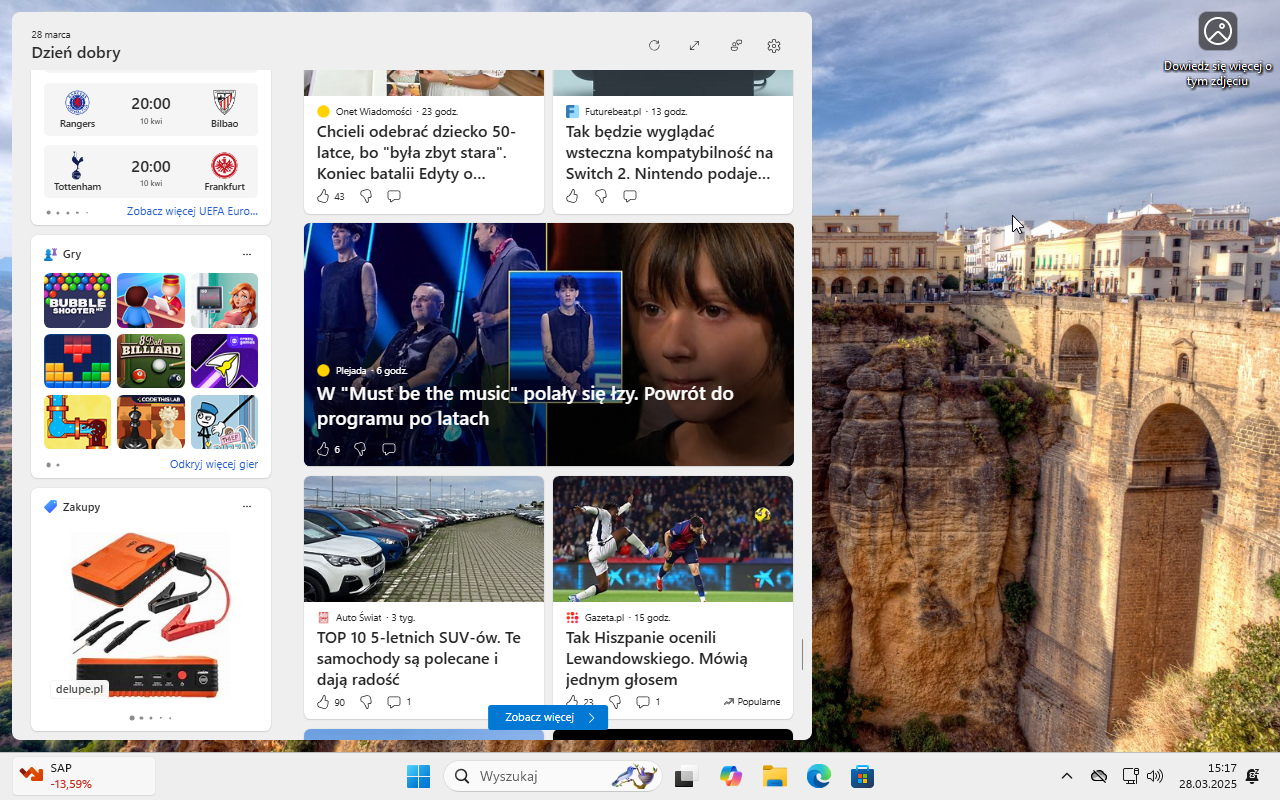 …i prawie jesteśmy w domu! Pomimo nie wyrażenia zgody na lokalizację, system i tak wskazał bardzo celnie miasto w którym mieszkam. Jak w takim razie traktować te „wybory”? Podziwiając w końcu nasze okienka otwieramy menu widżetów a tam clickbaitowe artykuły i kuszące reklamy! Szukamy interesującego nas programu w menu start a tu gąszcz zbędnego dla nas oprogramowania i nic potrzebnego nie możemy znaleźć. Nie poddajemy się i odpalamy przeglądarkę Edge, akceptujemy kolejne zgody, profilowanie, przetwarzanie etc. i szukamy w Bingu interesującego nas instalatora programu. Jak już uda nam się go znaleźć, to instalujemy i konfigurujemy, ewentualnie płacimy za klucz seryjny. Zerkamy za okno i widzimy piękne zachodzące słońce… To już 22:00?! Wyłączamy naszego nowiutkiego peceta, i zbieramy się do spania.