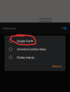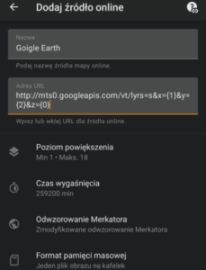Dodatkowym atutem aplikacji jest możliwość dodania różnego rodzaju map online, w tym np. zdjęć satelitarnych Google: