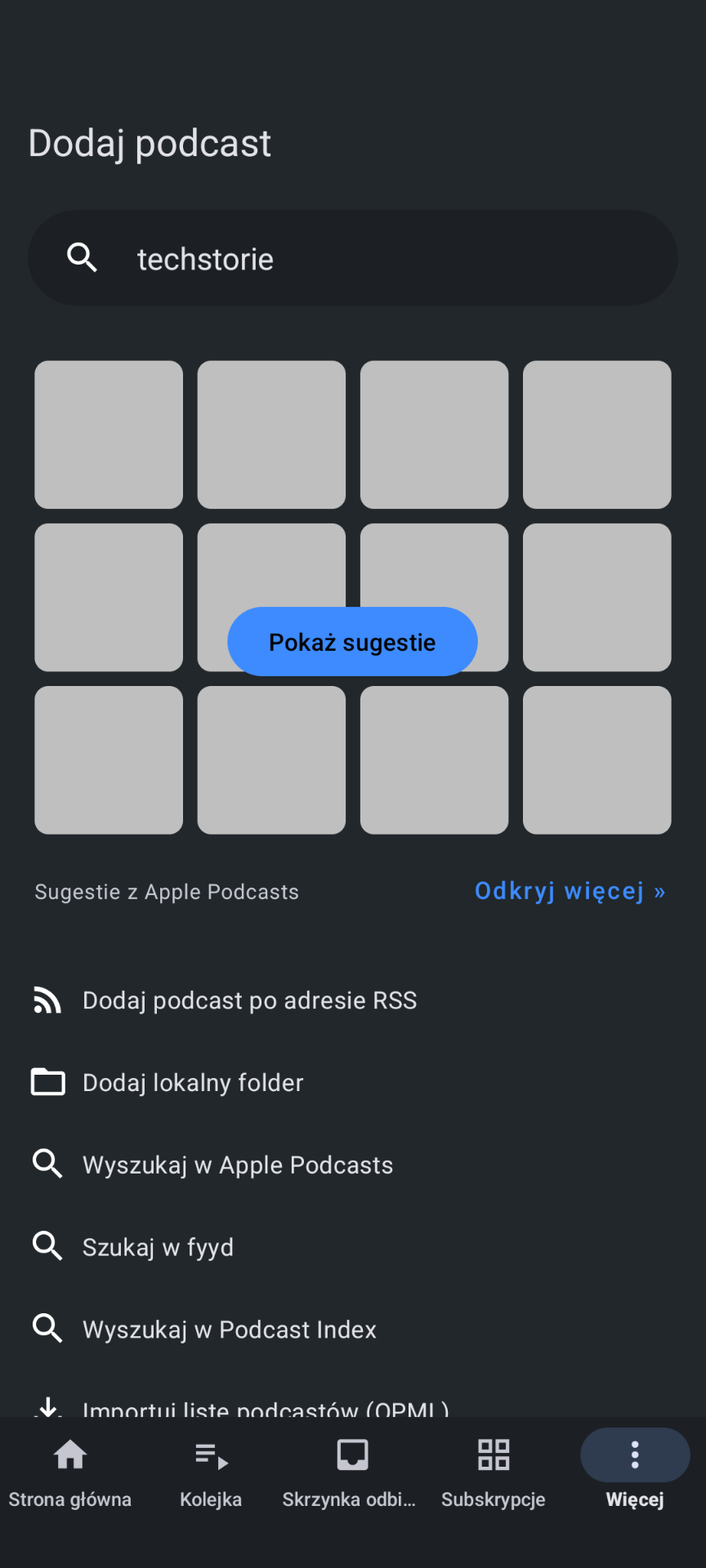 AntennaPod to jedna z ciekawszych aplikacji do słuchania podcastów. Pozwala na wyszukiwanie materiałów z wielu źródeł jednocześnie. Obsługuje cytując autorów: „Apple Podcasts, gPodder.net, fyyd lub Podcast Index, pliki OPML i linki RSS lub Atom”. Istnieje duża doza prawdopodobieństwa, że znajdziemy w niej interesujący nas podcast. Aplikacja dostępna w F-droid.